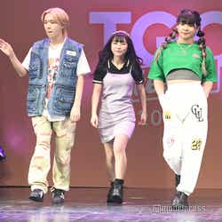 MCには、九州出身のパンクブーブーが初登場。ファッションステージでは、ゆうちゃみがトップバッターで登場。チアガール風の着こなしで、開幕を飾った。カップルYouTuberの「なこなこ」こと、なごみとこーくんは、タイダイ柄のセットアップをペアルック風に着用。仲良く肩を並べて歩き、会場全体のファンを見渡してファンサービスをした。