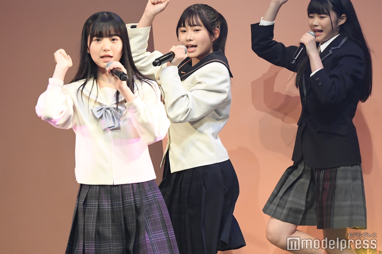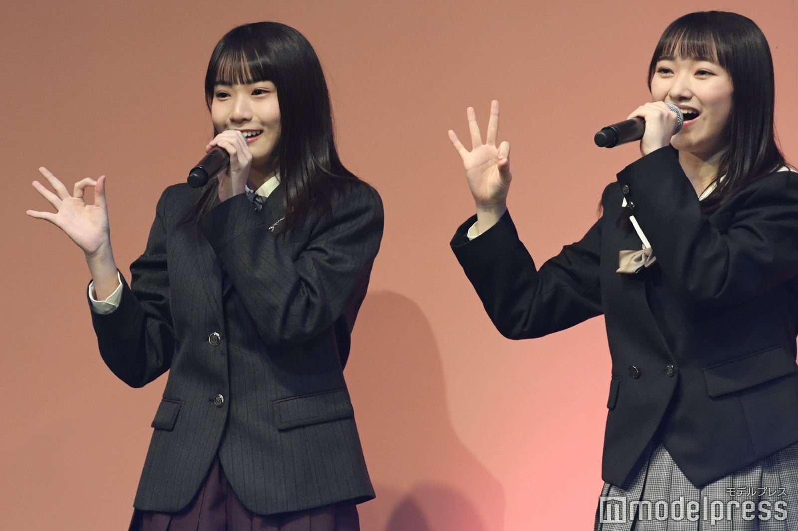15期生の佐藤妃星の実妹として話題を呼んでいる佐藤が代表して「目の前にお客さんがいることもイベントに出演させていただくことも初めてでとっても緊張しています」と挨拶。佐藤をセンターに「大声ダイヤモンド」をフレッシュに歌唱し、お披露目後初仕事を終えた。