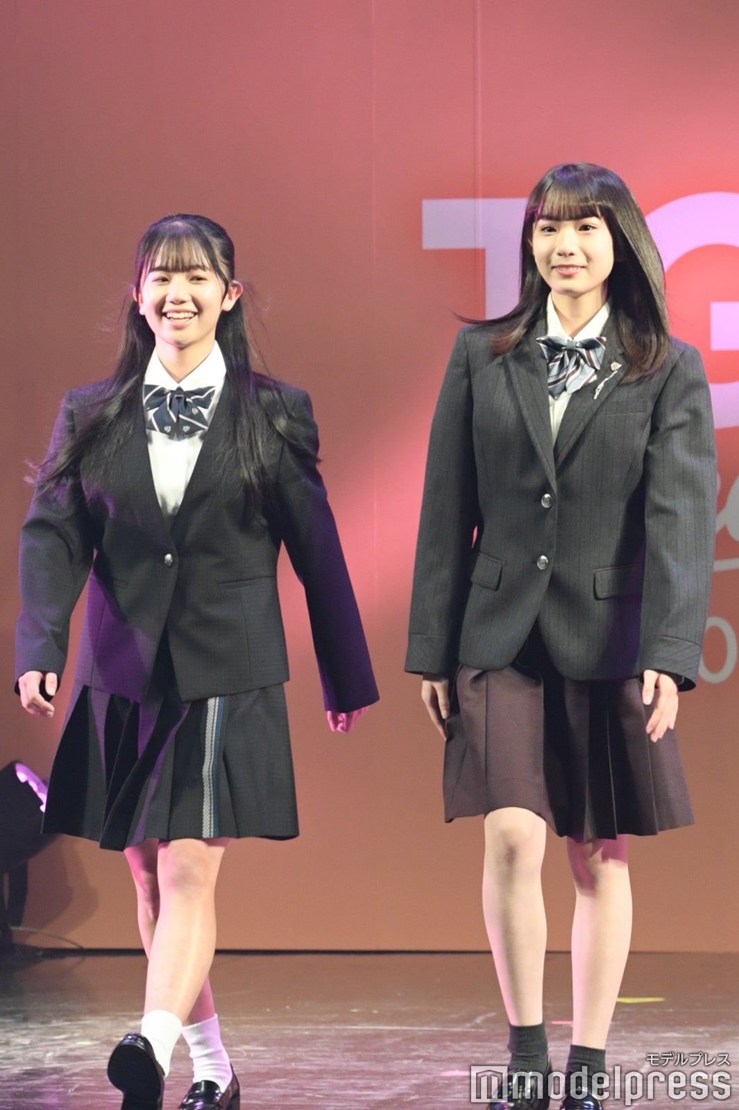 5月4日に初お披露目されたばかりの新メンバーがランウェイ初登場&歌唱披露。太田有紀(おおた・ゆき/18)、小濱心音(こはま・ここね/15)、佐藤綺星(さとう・あいり/17)、橋本恵理子(はしもと・えりこ/16)、長谷川新奈(はせがわ・にいな/20)、畠山希美(はたけやま・のぞみ/14)、平田侑希(ひらた・ゆき/19)、布袋百椛(ほてい・もか/17)、正鋳真優(まさい・まゆう/17)、水島美結(みずしま・みゆう/18)、山崎空(※「崎」は正式には「たつさき」 やまざき・そら/17)の11人が数人ずつで制服姿でランウェイをウォーキング。