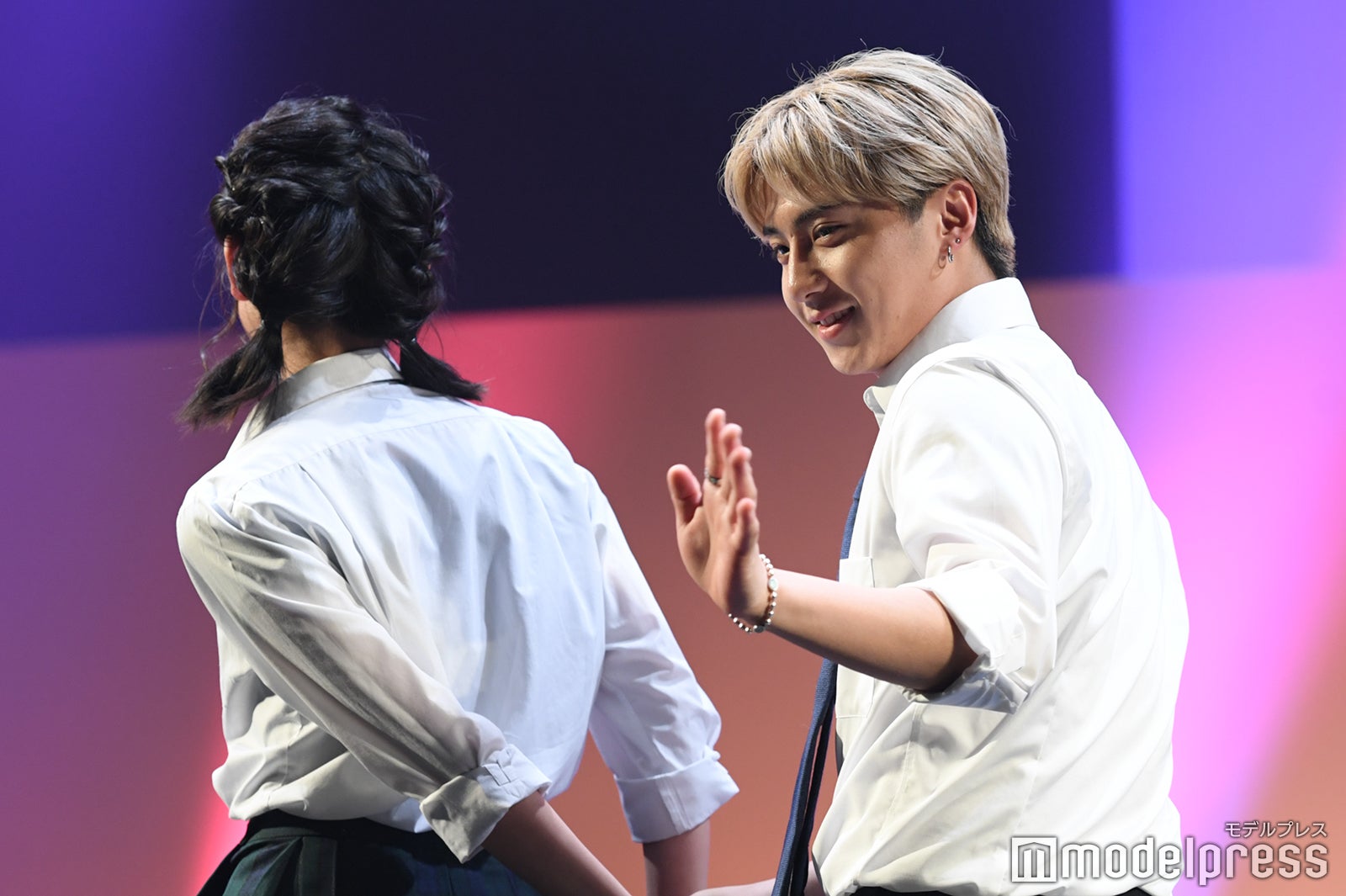 歴代メンバーが多数集結した「今日、好きになりました。」ステージ。2人は腕を組んで歩き、ランウェイトップで向き合うと可愛らしくハグ。みとが岡田のほっぺを触るポーズで仲良しぶりをアピールし、観客をキュンキュンさせていた。「今日、好きになりました。」シリーズは、「運命の恋を見つける、恋と青春の修学旅行」をテーマとして、2泊3日の中で巻き起こる、現役高校生たちのリアルで等身大な本気の恋と青春の模様を追いかけた、恋愛リアリティーショー。