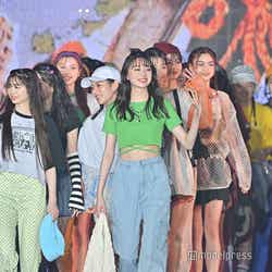 ステージでは、出口夏希、永瀬莉子、桜田ひより、秋田汐梨、田鍋梨々花、平美乃理、大友樹乃、茅島みずき、雑賀サクラ、藤村木音、上坂樹里、加藤栞、ブリッジマン遊七、瀬戸琴楓、入江美沙希、相羽星良、秋本レイラニ、市ノ瀬アオ、森崎美月(※「崎」は正式には「たつさき」)、葛西杏也菜、石川花と、21人の専属モデルが豪華集結。2000年代に流行した“Y2K”ファッションをテーマに、チビTシャツやミニスカートに身を包んだ21人。コーディネートに合わせ、顔にはラインストーンをあしらっていた。