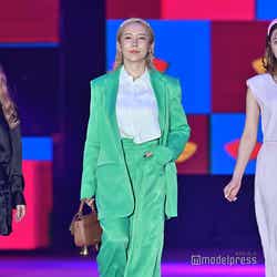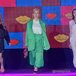 大人っぽいスタイリングに合わせ、凛とした表情でランウェイを闊歩した3人だが、ステージの最後に再び登場した際には平成フラミンゴらと満面の笑みで客席に手を振っていた。