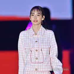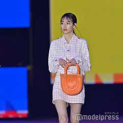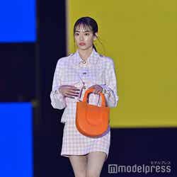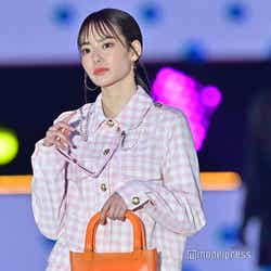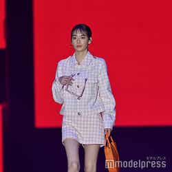 ショー終盤に登場したなごみ。ピンク色のギンガムチェックのセットアップを着こなしランウェイを歩いた。ショートパンツからは美しい脚を大胆に披露。ステージトップでは、首から下げていたサングラスを口元に持っていきポーズを決め、笑顔を見せていた。