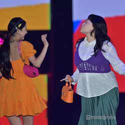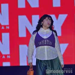 丸山礼、“舌ペロ&ウインク”でノリノリ 平成フラミンゴ・ミチとのやり取りも<GirlsAward 2022 S/S>