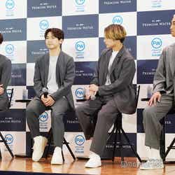 EXILEのTETSUYA、NAOTO、白濱亜嵐、関口メンディーが19日、都内にて開催されたウォーターサーバーブランドの記者発表会に出席。関口が“メンディー語”を連発し、会場を沸かした。