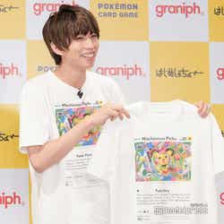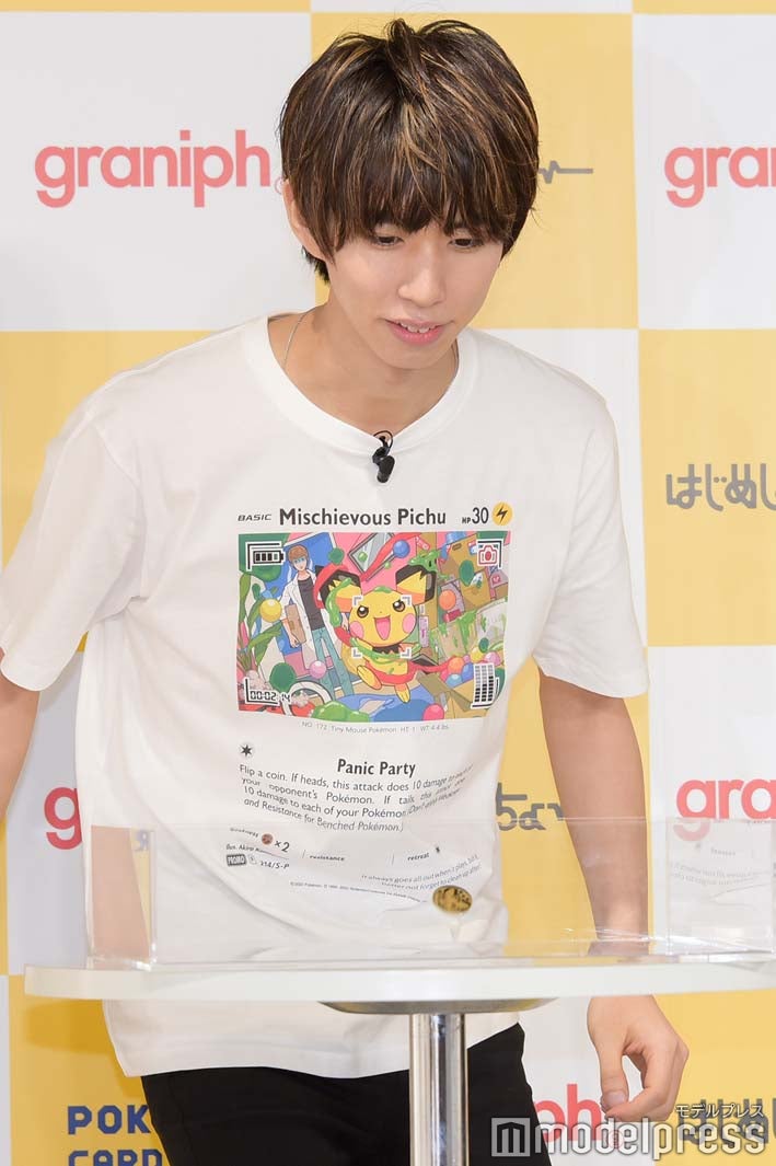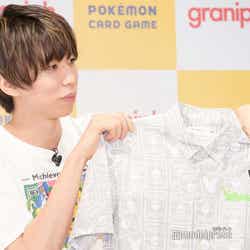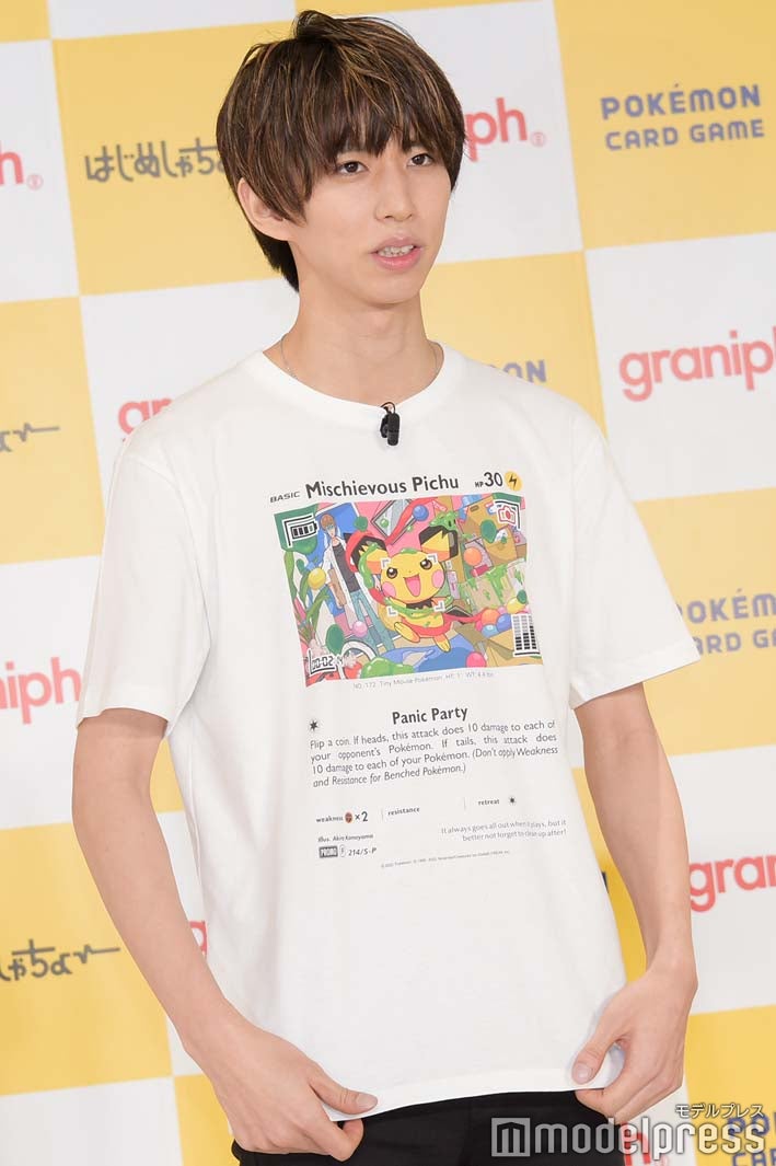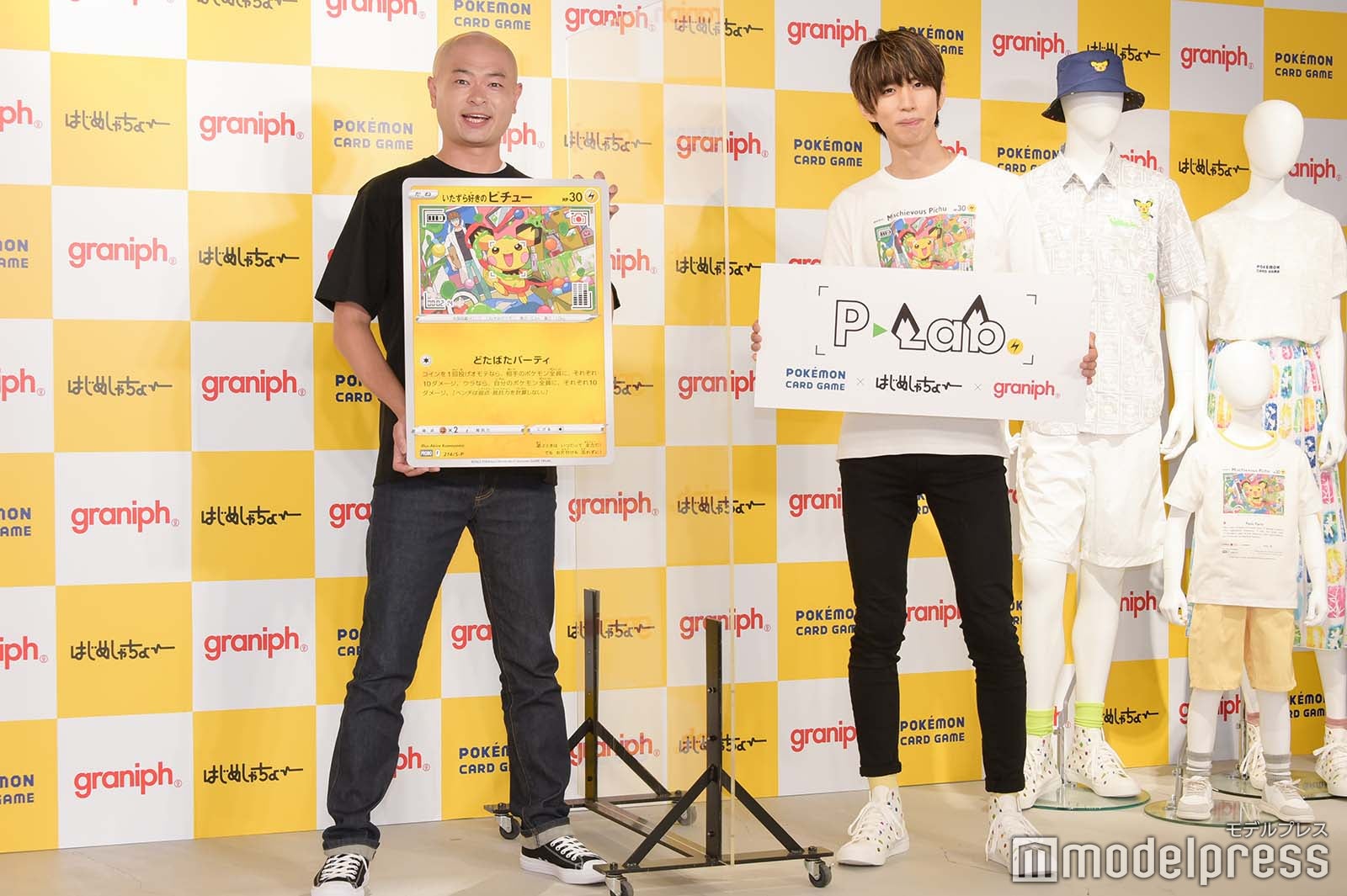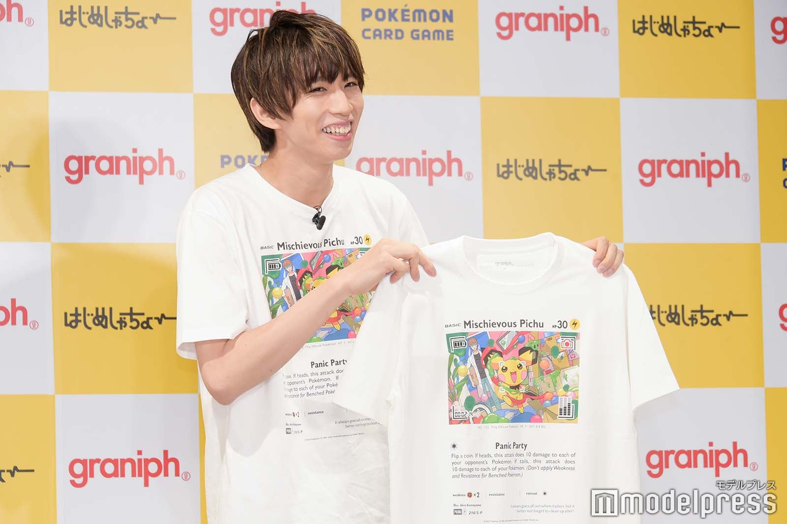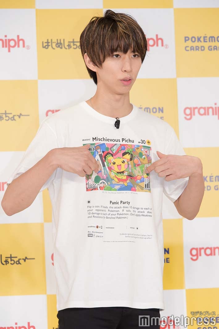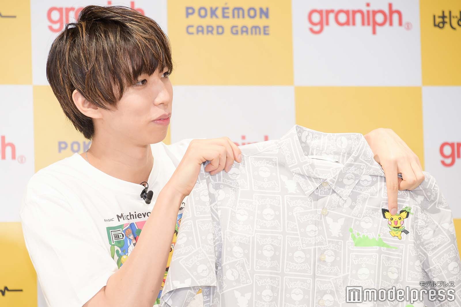 はじめしゃちょーは、イベントにコラボTシャツを着用して登場すると「可愛くないですか?」と満面の笑み。Tシャツのほかにも様々なアイテムがあり「デザインを活かしつつ、遊び心を盛り込んだ。いたずら心満載のアイテムができた。ポケモンカードが好きな方がぜひ手にとってほしい。さり気なくポケモンカードが好きっていうのが表現できる」と語った。完成したアイテムを誰におすすめしたいか聞かれると、ポケモン好きの「本郷奏多くん」と挙げ、「かっこいいのでおしゃれに着てくれそう。プレゼントしたいですね」と声を弾ませた。