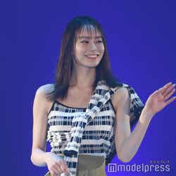 可愛すぎる顔面でバズったなごみは、タイトキャミソールにロングパンツを合わせたカジュアルスタイルで登場。同柄のシャツを羽織りつつ、抜群スタイルを披露した。また、ランウェイ先端では、カメラを見つめ、とびきりキュートな視線で会場を魅了した。