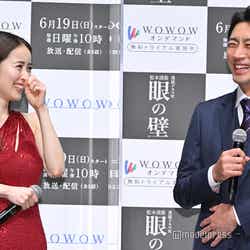 今作は、ベストセラー作家・松本清張が『点と線』に次いで発表、社会派推理小説の起点になった記念碑的な作品でもある『眼の壁』(新潮文庫刊)を、没後30年記念でWOWOWが待望の連続ドラマ化。主演に小泉孝太郎を迎え、バブル終焉期の1990年に舞台を移しミステリアスな世界観を蘇らせる。巧妙な手形詐欺で主人公らを翻弄する堀口勝役を演じる薮は「今回、詐欺師役ということで、ずっと孝太郎さん演じる萩崎(⻯雄)を睨んでいるシーンが多かった。今日、久々に孝太郎さんさんとお会いして『薮くん優しくなったね』って言われるくらい、ずっと遠くで孝太郎さんを睨んでいるシーンが多かったので、そういった凄みみたいなものが伝わればいいなと思っております。頑張って詐欺師しています」と挨拶し、小泉は「本当に柔らかくて優しい方でホッとしています」と胸を撫で下ろした。