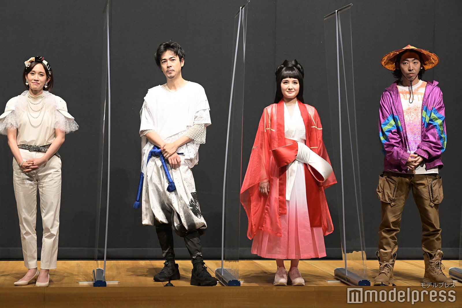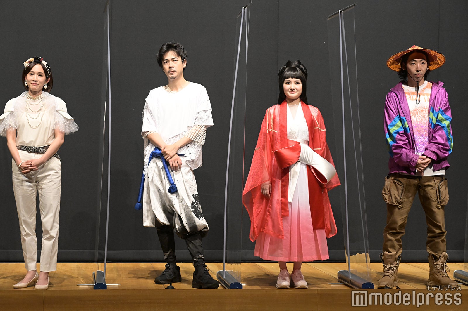杉原邦生氏が演出を手がける本作は、葬式屋のミズヲ(成田)や古代の女王・ヒメ女(葵)などの個性豊かな登場人物が織りなす壮大なドラマを描く。この日は共演者の前田敦子、玉置玲央、大鶴佐助、柄本時生、そして杉原も出席していた。舞台稽古を経ての手ごたえについて、成田は「一番今が緊張していない状態です」とリラックスできている模様。葵は稽古を休んでしまった期間があったとしたうえで「いろいろ親切に教えていただいて、なんとか本番までには皆さんの足を引っ張らず、行けるところまで追いつけたかな」と言い「この作品が皆様に届いたらどんなリアクションが返ってくるのかっていうのがものすごく楽しみです」とも語った。