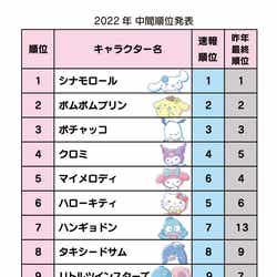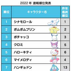 「2022年サンリオキャラクター大賞」結果順位
