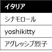 第1位:シナモロール第2位:ポムポムプリン