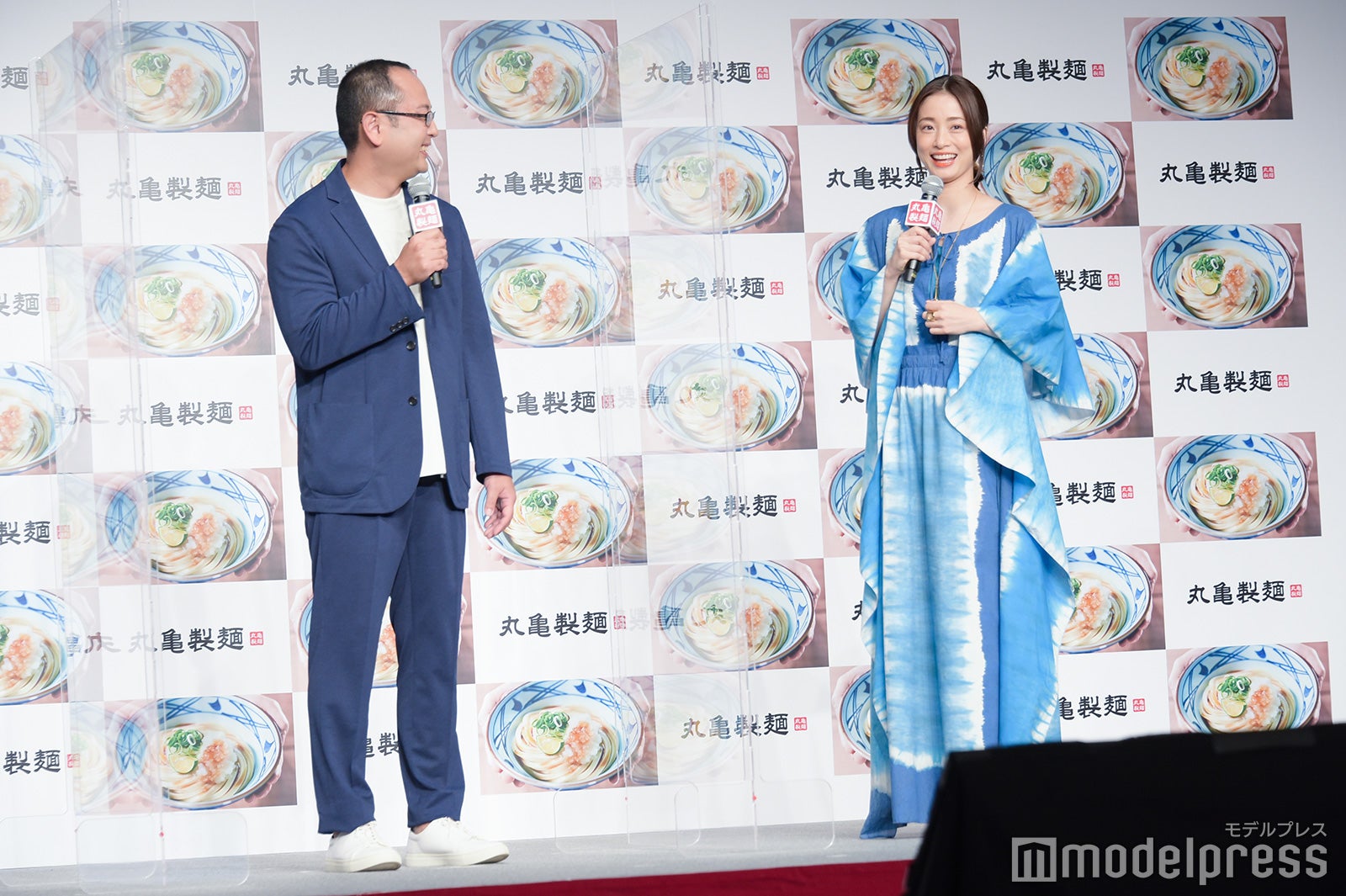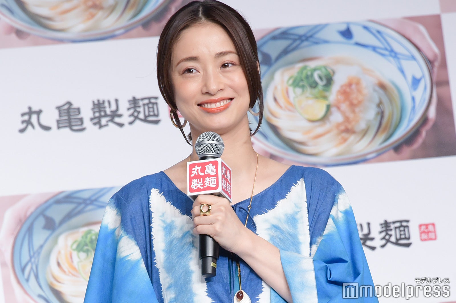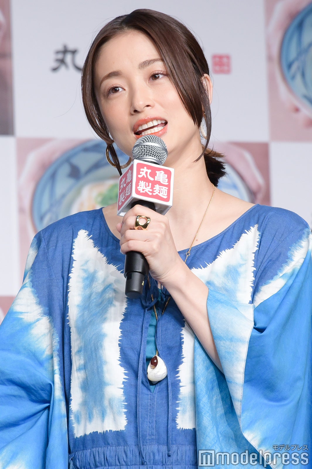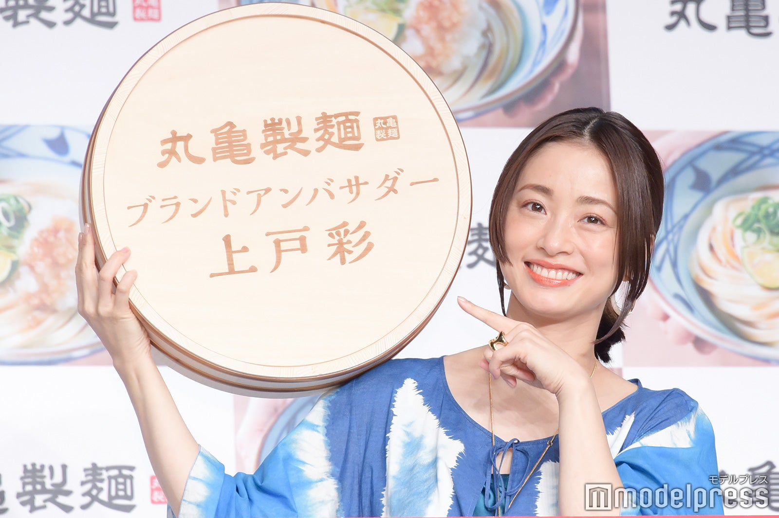 夏らしいブルーのワンピース姿で登場した上戸。司会者から「夏を先取りですね」と声をかけられると、「そうなんです、なち…夏です(笑)」と噛んでしまい、照れ笑い。同発表会が生中継されていることを知ると「発言に気をつけまーす」とおちゃめにコメントした。うどんのチェーン店アンバサダーとなり、「普通にファンなんです。子供2人を連れて行ったりする」と告白。「食べるって大事。大好きな人とご飯を囲むのは幸せなことだと、昔からずっと思っています」と語った。