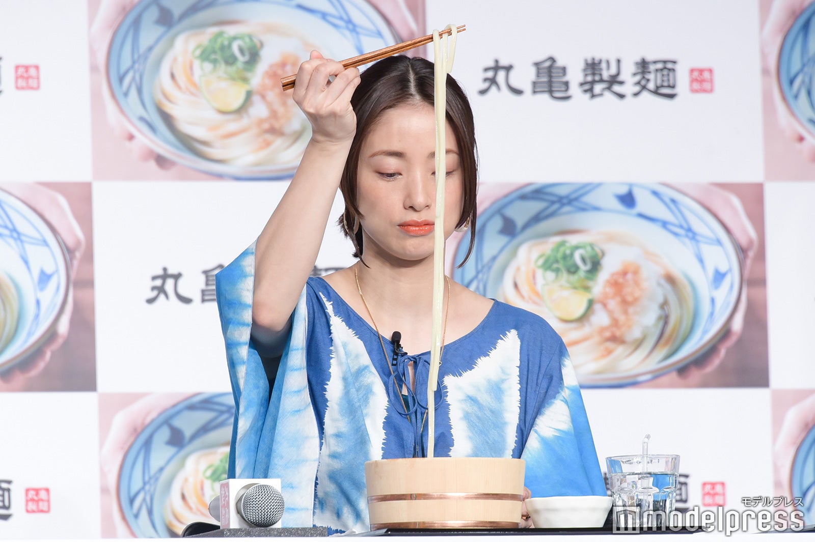 イベントでは2種類のうどんを食べ比べ。大勢の報道陣が取材に訪れていたがカメラを気にすることなく、豪快にうどんをズズズッとすすり「う~ん、最高!食べることが仕事って最高ですね」とご満悦。「みなさんの前でいただいてしまって申し訳ない。1人ですごく幸せな気分に浸っております」と笑顔が止まらず。多彩な薬味も用意されており、「いつもたくさん使う。薬味泥棒だと思われていると思う」とコメントした。6月15日から全国で公開される新CM。撮影時のエピソードを聞かれると、「うどんをすすっても衣装を汚さずに食べられたので達成感だった」と振り返り、さらに「個人的にはもっと食べたかった。あまりにもスムーズに撮影が進んで、基本的に1テイクで終わってしまい、食べ足りなくて帰りに寄って食べました(笑)」と明かした。(modelpress編集部)