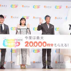 また、前回のCMで事業広報部社員としてカード普及に尽力した深川は、辞令交付により係長に昇格し、総務省の金子恭之大臣から巨大な名刺を受け取りにっこり。「着ぐるみを着たのが人生初めてだったので楽しかったですし、観てくださった方から『暑くなかった?』とか『重くなかった?』とか着ぐるみに関する質問がいっぱいきました」と前回のCMを回顧。今作については「残念ながらスタッフジャンパーでしたが、舘さんが着ぐるみを着てくださっていれば素敵な(CMになると思います)。今後も楽しみにしています」と期待を寄せた。この日は、新庄剛志、松坂大輔からメッセージVTRも寄せられており、「回を重ねるごとにどんどん賑やかになって、今回は新庄さんも松坂さんもいらっしゃって豪華なので、みなさんに観てもらえるのが楽しみです」と声を弾ませた。