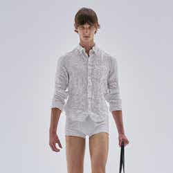25日パリ時間正午、ロエベの2023年春夏メンズコレクションが発表。今回のコレクションは、テクノロジーと自然の実験的な掛け合わせが、詩的なビジョンを立ち上げ、デジタルスクリーンやテクノロジーの漂流物や、生きた植物が装飾するコレクションとなる。物は原型へと回帰し、膨張あるいは縮小され、切断される。定番のボンバージャケット、フーディ、スウェットシャツ、ポロ、パーカは完全でありながら摩滅し、デバイスや植物が取り込まれている。衣服やシューズに植えられた植物はデザイナー、パウラ・ウラルギ・エスカローナとのコラボレーションによるものになっている。(modelpress編集部)