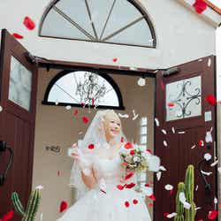 さらに、本格的なウエディングドレスにも初挑戦しており、篠崎が「教会で撮影して、ファンの方に喜んでいただけたら嬉しいな」と笑顔。加えて「お風呂に入っている姿も今まで見せたこと無かったです。スクラップ工場の撮影で汚れてしまったので、本当にお風呂に入っているシーンで、髪の毛を洗っているシーンのあとにもガチでお風呂に入りました」とも紹介し、「背中のホックを外しているシーンもSEXYかなと思います」とアピールした。