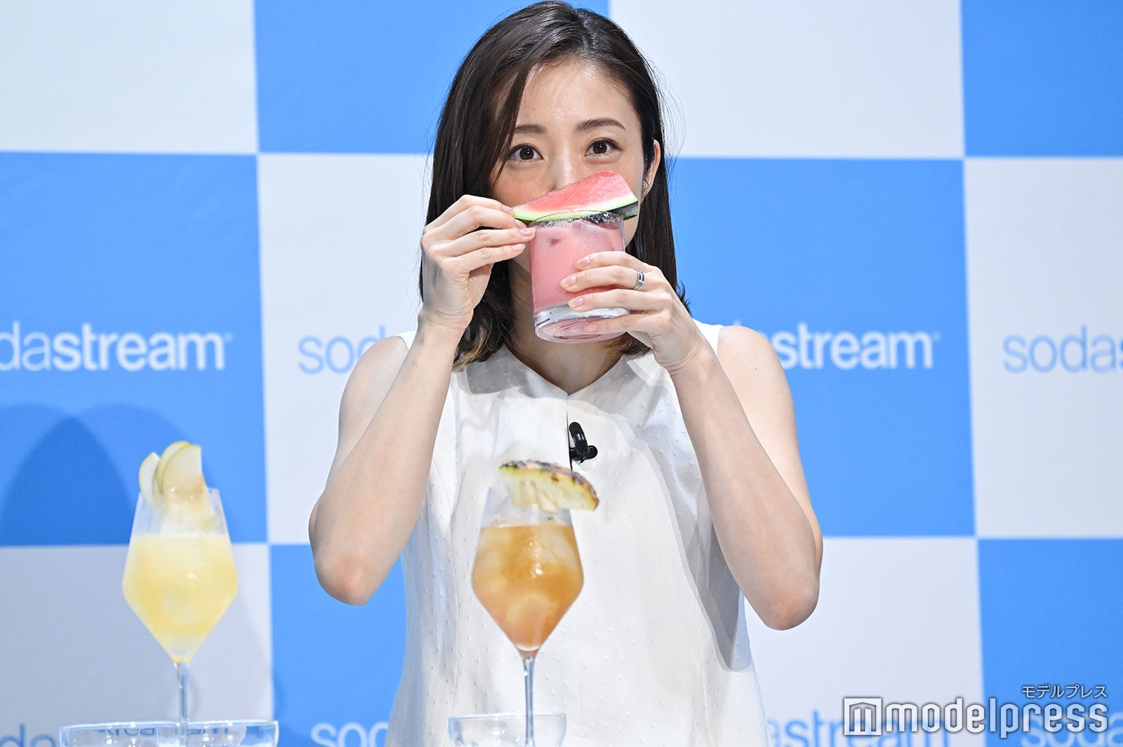 さらに、同イベントでは、国際医療福祉大学の前田眞治教授による炭酸の効果についての講義が行われ、炭酸水が熱中症対策に効果的だと教授された上戸は、自身が行なっている熱中症予防方法を聞かれると「私も炭酸がとにかく好きなので、最近、再開しましたホットヨガに行くときもマイボトルに炭酸水とクエン酸を混ぜて持って行っているんですが、それでもフラフラしがちなので、もっと体が(水分を)欲しているんだなって感じますね」といい、「年々、危険(な暑さ)になっていますけど、みなさんにもさらに気をつけてもらって、前田先生もおっしゃっていましたけど、炭酸を口にすることが体にどれだけよかったのか初めて知れたので、みなさんにも炭酸を広めていきたいなと思います」とオススメした。なお、同イベントでは、バーテンダーの荻島渉氏による炭酸レシピの紹介も行われ、バー未経験だという上戸は、荻島氏がジュースを作る様を見ると「かっこいい。こんな感じでみなさん、バーで飲まれるんですね。行ってみたい!」と目を輝かせ、「(ジュースが完成したら)『あちらのお客さまからです』って言ってください」とお願い。荻島氏が、過去に1度『あちらのお客さまからです』と言った経験があることを明かすと、上戸は「あるんですね。おいくつくらいの方がそういうことされるんですか?あの感覚、ちょっと味わってみたいですね」と興味津々な様子だった。(modelpress編集部)