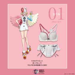 本コレクションはランジェリー4型、ルームウエア2型、ポーチ1型の全7型を展開。映画の主要キャラクターであるウタを中心にそれぞれ劇中に登場するフェスや戦闘服の衣装をイメージした、数量限定のスペシャルなコレクション。着こなすのは、絶大な人気を誇るNo.1コスプレイヤーのえなこと、驚異的な肉体をもつマッチョ芸人の野田。映画に登場するキャラクターになりきり、圧巻の肉体美を披露している。