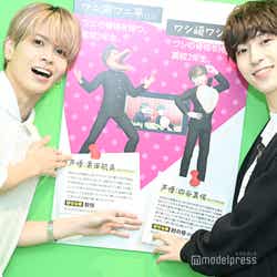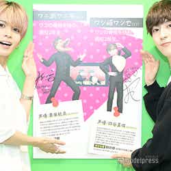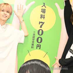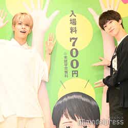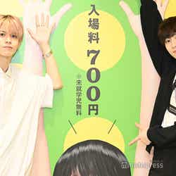 ダンスボーカルグループ・OCTPATHの栗田航兵と四谷真佑が10日、都内で開催された「カメの甲羅はあばら骨」展の体験イベントに出席した。