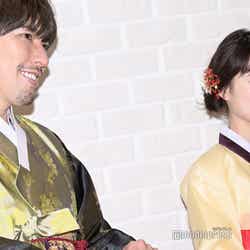 3人がスタジオMCを務める「HEART SIGNAL JAPAN」は、若者を中心に人気を集める韓国発の人気No.1恋愛番組「HEART SIGNAL」を、ABEMAが日本初リメイクしたもの。日韓共同制作の「HEART SIGNAL JAPAN」として新たに放送をスタートする。番組では韓国男子と日本女子が韓国の地でシェアハウスをしながら恋模様を繰り広げる。MCの3人は韓国の民族衣装で取材に応じた。