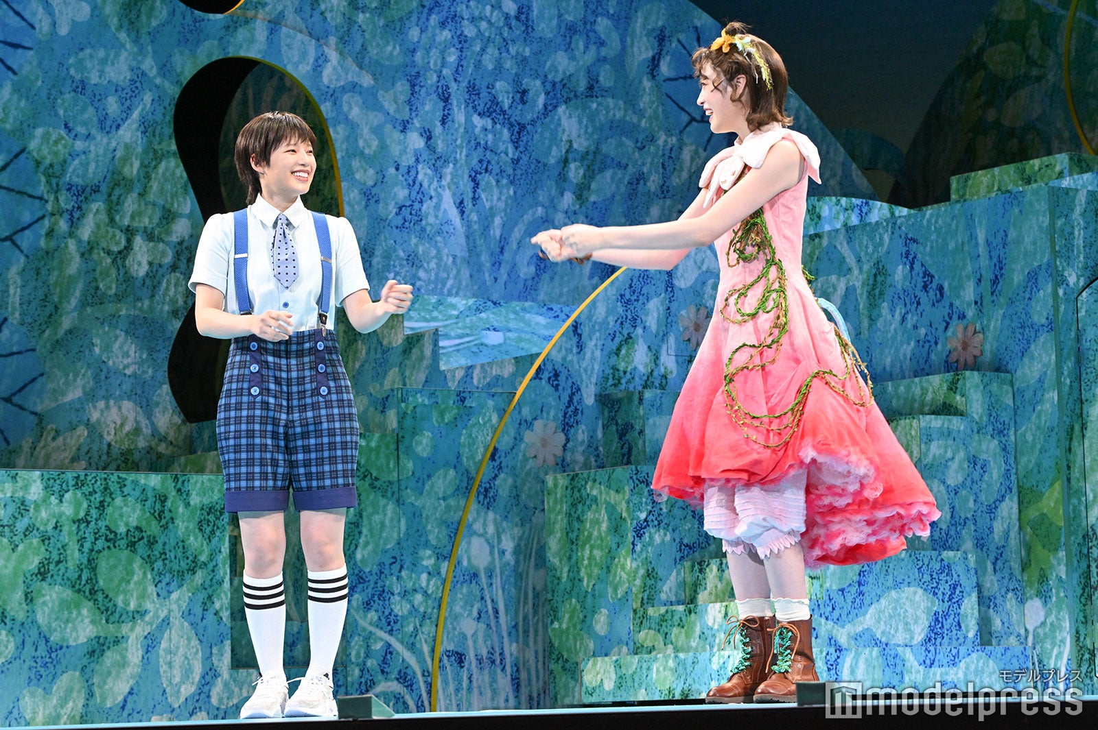 また今回がミュージカル初挑戦となる高橋と石井は、心境を尋ねられると、高橋は「杏奈さんは初めてなのに全然緊張されていなくて、私は杏奈さんと一緒にやるときに、いつも手を繋いだり、ハグしながらお互いを鼓舞し合っているんですけど、力強いパワーをくれる杏奈ちゃんがいるからこそ、私は心強い」と回答。「みなさんのおかげで私はここに立っていられるなと思うので、成長した姿を見ていただきたいなと思います」と話した。石井は「私はミュージカルが初めてなんですけど、私はひかるちゃんの天真爛漫なノノのような存在からパワーをもらっています」と告白。「自分にとっては24歳で挑戦できるというのが本当にありがたいことだなと思うので、明日、初日ですけど、本当に頑張りたいなと思っています」と力強く語った。