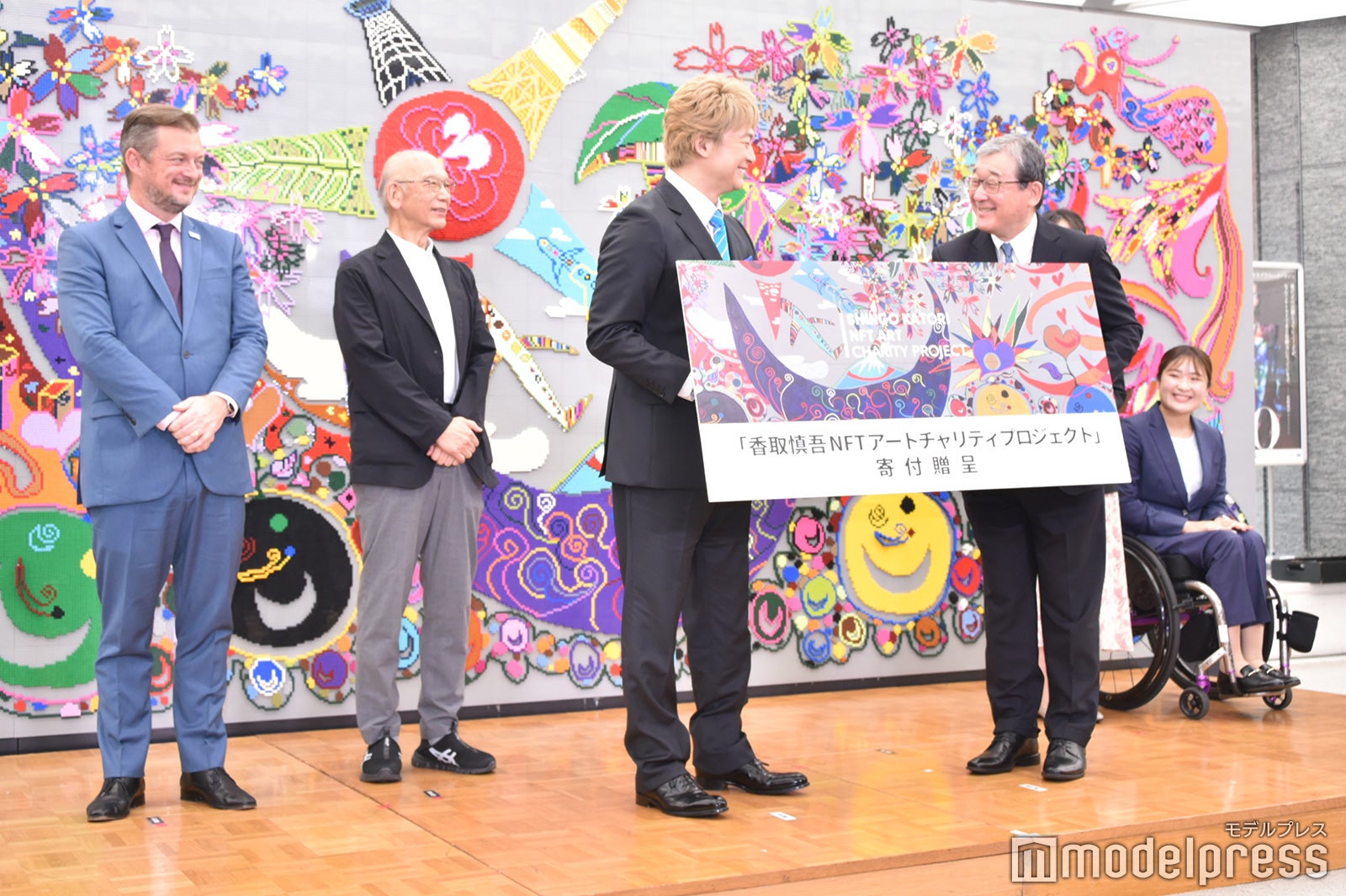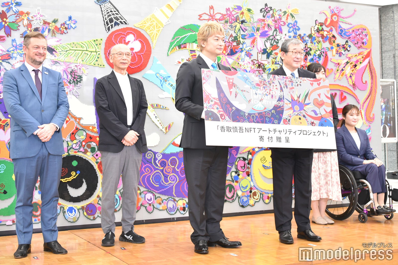 香取慎吾が23日、都内で行われた「香取慎吾NFTアートチャリティプロジェクト」寄付贈呈式に出席。スペシャルサポーターを務めるパラスポーツ支援の活動について語った。