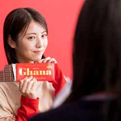 ― CM撮影の感想を教えてください。今回は一人だったからこそ、まったりと、いっぱいチョコレートを食べさせていただきました。(ロケ場所が)緑が多いところだったこともあり、すごく良い一日でした。がぶっと食べて口いっぱいにモゴモゴさせることは、幸福感が高いなと感じました。私も家では、外で食べる時より一口のサイズは大きくなっている気がします(笑)。
