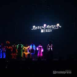 10人のランウェイが終わると会場が暗転。1人ずつ衣装の一部がピンクやオレンジなどの蛍光カラーに光り出した。これは、メンバー自身がオリジナルで作り上げ、イルミネーションを施したもの。その後、再びランウェイを歩き出し、会場をカラフルに彩るとともに夢のような世界観で魅了した。このパフォーマンスは街をイルミネーションで彩るといった「オオカミ」メンバーによるイベントの開催にちなんだもので、詳細は後日発表される。最後に10人全員で「ラブ&ピース」と声を揃えた後、再び暗転し、会場を後にした。