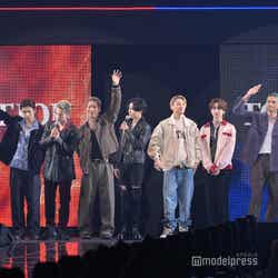 映画「HiGH&LOW THE WORST X」(9月9日公開/読み:「X」=クロス)ステージからは、THE RAMPAGE from EXILE TRIBEの川村壱馬、吉野北人、鈴木昂秀、龍、藤原樹、陣、長谷川慎、BE:FIRSTの三山凌輝(RYOKI)、俳優の塩野瑛久、FANTASTICS from EXILE TRIBEの堀夏喜、木村慧人と総勢11人のキャストが集結。映画さながらに“バチバチ”の姿を見せ、観客を盛り上げた。佐藤勝利・ラウール・IMPACTors…豪華ジャニーズも
