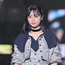 90'sのブリトニー・スピアーズからインスピレーションを受け「Good girls?Bad Girl?」をシーズンテーマに掲げる「REDYAZEL」のステージに登場した莉子。美しいデコルテが輝くミニ丈ワンピに、チョーカーをアクセントに。抜群のスタイルを披露した。また、莉子は「moment+」のステージにも登場し、モコモコのコートを着こなし“多様性”を表現した。