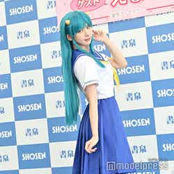 コスプレイヤーのえなこが4日、都内でマンガ家の高橋留美子氏とコラボした「えなこ×るーみっくわーるど コラボコスプレ写真集『こすみっくわーるど』」(小学館)発売記念イベントを開催。取材会には「うる星やつら」内のキャラクター・ラムちゃんのセーラー服コスプレで登場し、サプライズに興奮する場面もあった。