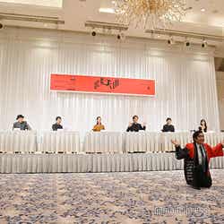最後に、締めのコメントを求められた中川は「いよいよ始まってしまうんだなという気持ちで、また背筋が伸びる思いでいます。念願かなって舞台の上でお芝居ができることに感謝したいと思っております」と目を輝かせ、「昭和歌謡、昭和の芸能界の時代は、僕の世代からするとすごく新鮮なところもたくさんありまして、今にはないエネルギーだったりファッションだったりカルチャーだったり音楽だったりが色鮮やかで、ポップでカラフルで、そういう印象があります。そこに血生臭さというか、人間の内側から滲み出てくる匂いだったり温度みたいなものが乗って、見てくださる方の深い部分に響くような、そんなエネルギーのある作品にできたらいいなと思っています。僕自身もこの鳴尾定、桜木輝彦という役を通して、大千穐楽を迎える頃にどんな景色が見られるのか、先輩方の胸を借りて精一杯走り抜けたいと思っております。頑張ります!」と力強く語った。(modelpress編集部)