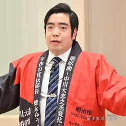 俳優の中川大志が13日、都内で行われた音楽劇「歌妖曲~中川大志之丞変化~」(11月6日より東京・明治座ほかで上演)の製作発表に、共演の松井玲奈、福本雄樹、浅利陽介、中村中、山内圭哉、池田成志、作・演出の倉持裕氏、出演者で公演宣伝部長の徳永ゆうきと出席。役柄への印象や作品への意気込みを語った。