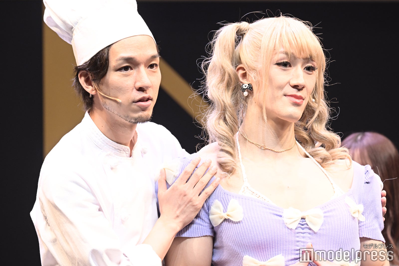 本作の主演として女性役に初挑戦した福田は、イオリになり切って「とてもとても素晴らしい舞台、心が熱くなる、女性の皆様の仲間に。力強く寄り添って、女性の気持ちになっております。ステラボールで一緒に元気になりマッスル」とにっこり。冨岡は「大先輩なんですけれども『何てことを言っているんだろう、さっきからこの人』と思って。すみません(笑)。神田ユイ役を演じさせていただきます冨岡健翔です」と素で語り、福田は「ちょっと待って!そのテンションで行くの?」とツッコミを入れて会場を沸かせた。