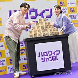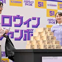 イベントには本物の5億円も登場。アンベールし、目の前に札束の山が現れると2人とも「おお」「すごい」と驚き。吉岡は「すごい…。圧を感じる、オーラが。外に5億円があるなんて、危なっかしい」とそわそわした様子で、成田も「アンベールした瞬間、一歩引いちゃいました。エネルギーにやられた」と圧倒されていた。