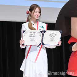 そんな資格の合否発表が同イベント内で行われ、合格したことが発表された。松村は、「本当に嬉しいです。ずっとお米が大好きだったんですけど、こうやって形あるものとして資格として持てることが自分の中でもとても光栄ですし、またお米が大好きって自身が言える一歩を前に進んだなと思います。会長からもお米博士だと言ってもらえたので、今日からお米博士と名乗らせていただきたいなと思います」と胸を張り、「これからも頑張りますので、今まで学んだことを活かして、皆さんにもっとお米のよさを伝えられたらいいなと思います」と語った。さらに、今年は松村が収穫したお米が当たるプレゼントキャンペーンが行われるそうで、自身の写真とメッセージが載った米袋を手にした松村は「こうやって自分がパッケージに載っているのは感慨深いですね」としみじみと語り、「しかもこれは私が本当に収穫したお米なので心がホワホワします」と夢心地。