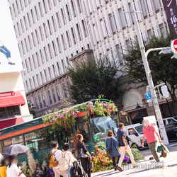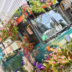 スターバックス コーヒー 神戸北野異人館店は、生田神社とはまた趣が違いパステルカラーの花々でお客さんをお出迎え。コーヒー片手に記念撮影する若者たちが多く、楽しそうな声が上がっていた。また、元町・HITODE交差点にはバスを用いたフラワーギャラリーが登場。普段とは異なる雰囲気に足を止めてしばし眺め、秋の訪れを感じていた。