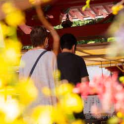 生田神社では参拝、さらには七五三で訪れた人たちが記念撮影する姿。モデルたちもフラワーギャラリーの前でフォトシューティングを行い、Nikiらが秋の彩りとの撮影に臨んでいた。