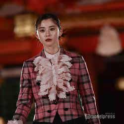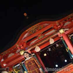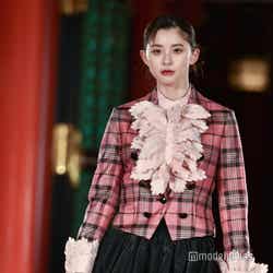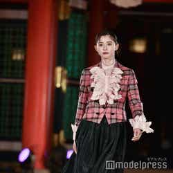 朝比奈は、最初のファッションステージ「KEITA MARUYAMA」のトップでランウェイに登場。ファッションショー×神社という類をみない空気の中、颯爽とクールなウォーキングで会場を一気に魅了した。