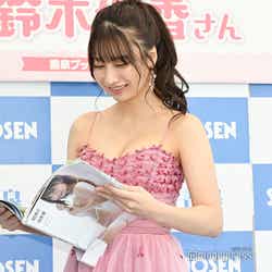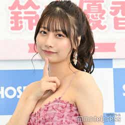 ラブリーな笑顔とマシュマロFカップを自然いっぱいの南の島で撮り下ろし、写真集ならではのサプライズセクシーカットにも挑戦した鈴木。甘酸っぱくてちょっとエッチな完全保存版の1冊に仕上がっている。同写真集に込めた思いを尋ねられた鈴木は「ファースト写真集ということで、1番かわいい自分を見てもらいたいなと思って、その日に合わせてダイエットをしたり、美容に気を使ったりして、過去イチのビジュアルで臨めるように頑張りました」と話し、どんなダイエットをしたのか問われると「食事制限を主にしたんですけど、撮影前にご飯を抜いたりして、写真集の話が来てから6kgくらい落としました」と告白。運動は苦手だそうだが「ときどき時間があるときは電車を使わずに歩いたりしました」と努力を明かした。