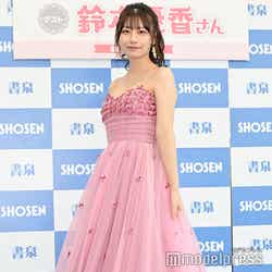 お気に入りには、葉っぱでうさ耳のポーズをしているカットを挙げ「カメラマンさんに、その辺にあった葉っぱで『一発芸をしてみてよ』って言われて、何も思いつかなくて、『じゃあウサギをやってみて』って言われてやってみたときの写真なんですけど、遊び心も入っていてかわいらしくてお気に入りです」と声を弾ませ、続けて、ベッドで寝そべっているすっぴんのカットを披露した鈴木は「この写真は最後に撮ったカットなんですけど、すっぴんのショットを入れたくて、自分から“やりたいなあ”って思ったカットで、最後にメイクとかを全部落としてもらって撮ったカットなのでとってもお気に入りです」とにっこり。すっぴんの写真を撮ってもらいたいと思った理由を問われると「今まですっぴんの写真をアップしたことがなくて、どこにも出したことがないので、せっかく写真集をやるってなったので、やったことのないことをやりたいなと思って入れようって思いました」と答えた。また、表紙にもなっている花風呂も鈴木の要望だったそうで「いろんな方の写真集を見てやりたいのを探していたら、花風呂ってかわいいなと思って提案させていただきました」といい、撮影中に「これを表紙にしたい」と言っていたそうで、出来栄えを聞かれると「想像よりもかわいらしくしてもらったのですごく満足です」と振り返った。(modelpress編集部)