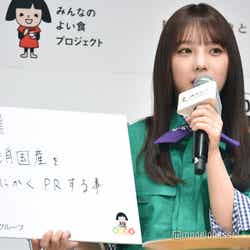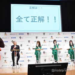 また、「国消国産クイズ」のステージでは、マスコットキャラクターの笑味ちゃんが登場。3人は「可愛い~!」と口を揃え、満面の笑みを浮かべた。クイズへの意気込みを聞かれると、秋元はよく自炊をすることから“国民の嫁”とファンから言われていると話し、自信満々の様子。山下と与田もCM撮影時に国消国産について学んだと明かし、3人とも見事全問正解となった。