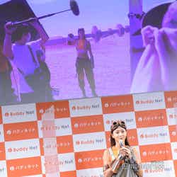 新CMで“荒野に突如現れた救世主”を演じたみちょぱは、撮影時の衣装で登場すると「壮大な感じになっていてスケール感が伝わったと思います。とにかく大変でしたがめちゃくちゃかっこいい感じに仕上がっていてよかったです」と満足げ。しかし、生まれ故郷である浜松の砂丘で真夏に行われた撮影は過酷だったようで、「日焼けが好きな私でさえ、めちゃくちゃ暑かった」上に、「(衣装で)お腹を出すのに、胃下垂で何か食べたらお腹がぽっこり出ちゃうから、ほぼ何も食べずだったので、普通に元気がなかったです」と明かし苦笑いに。