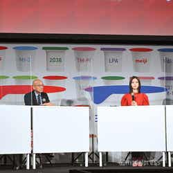 タレントの朝日奈央が4日、都内で行われた記者発表会に、お笑いコンビ・千原兄弟の千原ジュニアとともに出席。朝日は8月に一般男性と結婚後初めてのイベント出席となった。