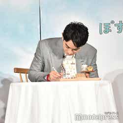 俳優の町田啓太が5日、都内で行われた「ぽすくまのおきにいり 2022~期間限定コラボカフェ~」オープン記念イベントに出席。デビュー当時の写真に照れる姿を見せた。