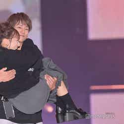 「Ange Charme」ステージに登場した辻と鈴木。辻はモーニング娘。、鈴木は℃-uteのメンバーとして活動していた時期があり、「ハロー!プロジェクト」所属の先輩と後輩の関係。同ステージのトリを飾った鈴木がステージに戻ると、辻が再登場した。2人は気恥ずかしそうに顔を見合わせ、微笑み合うとピースサインでアピール。「ハロプロ」の先輩と後輩のコラボレーションで会場を沸かせていた。