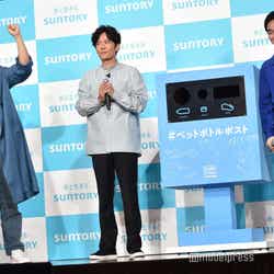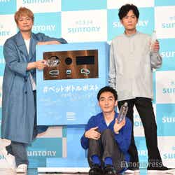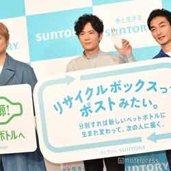 稲垣吾郎・草なぎ剛・香取慎吾が20日、都内で行われた、ペットボトルポスト記者発表会に登壇。CM撮影の舞台裏を語った。