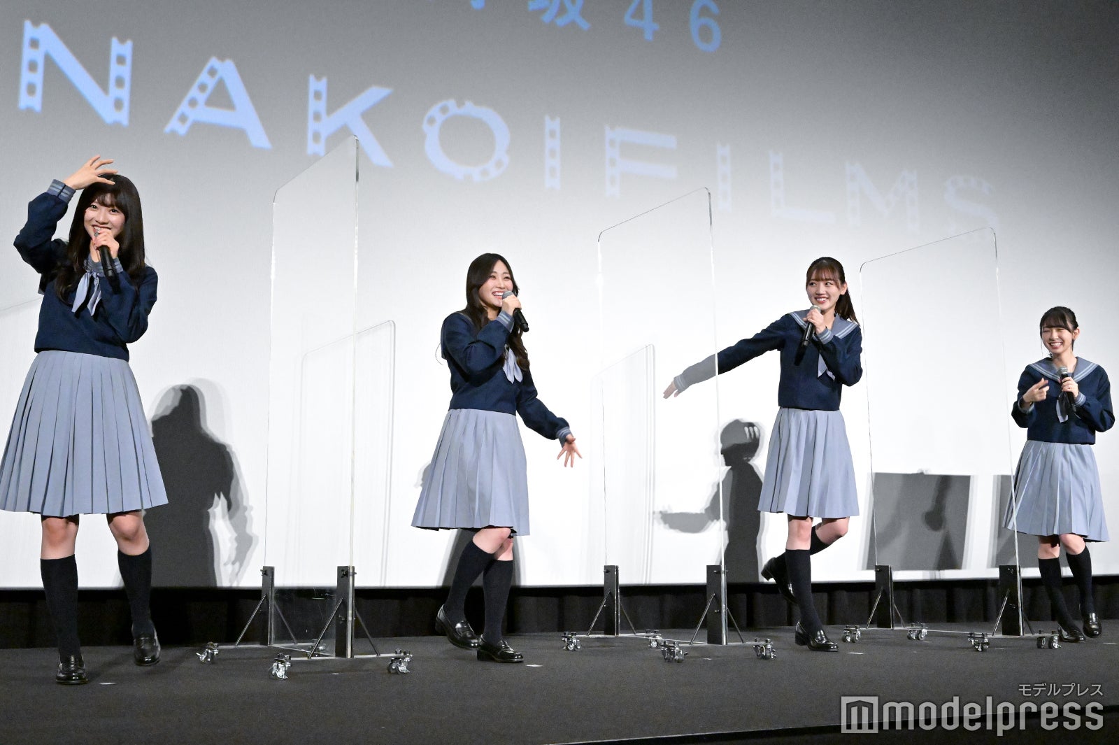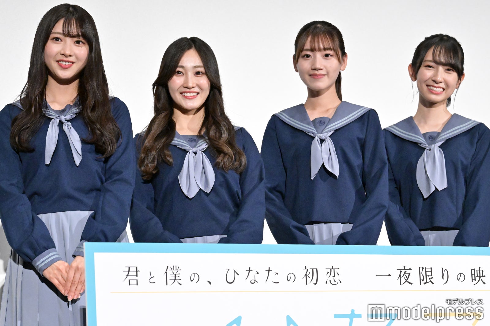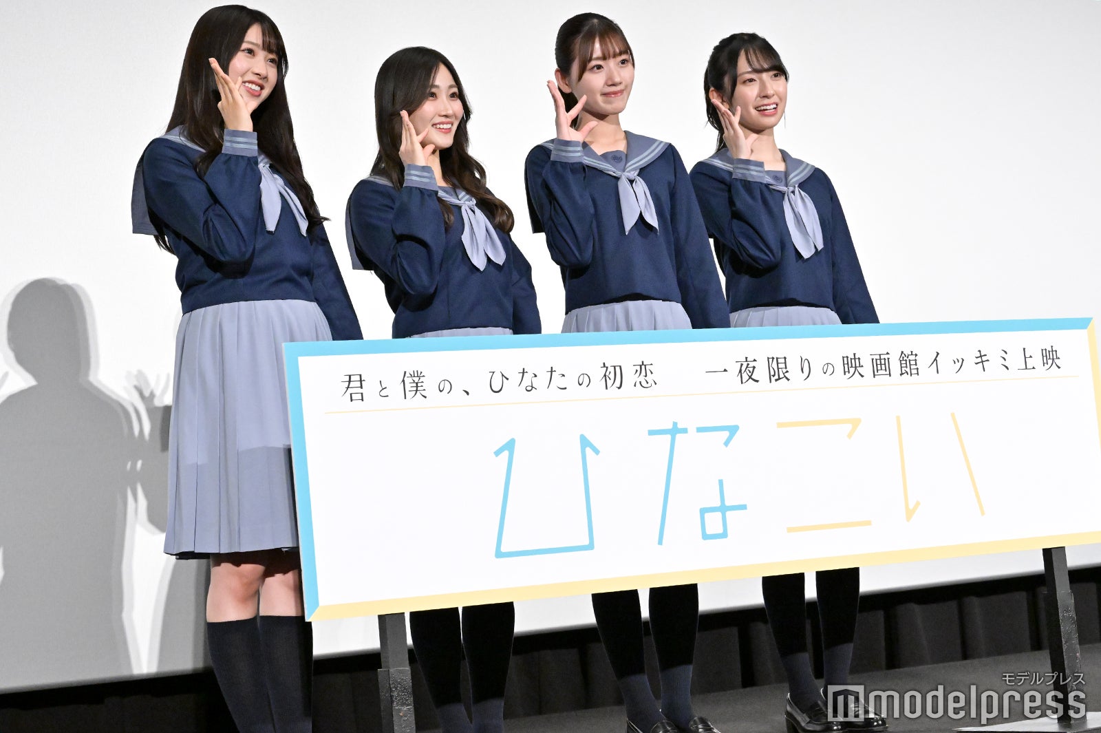 日向坂46の潮紗理菜、佐々木美玲、金村美玖、富田鈴花が28日、都内で行われたスマートフォンゲーム「ひなこい」の映像プロジェクト「HINAKOI FILMS『君と僕の、ひなたの初恋』」一夜限りの映画館イッキミ上映舞台挨拶に出席。撮影の裏側を明かした。