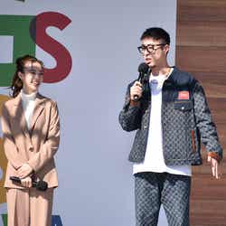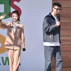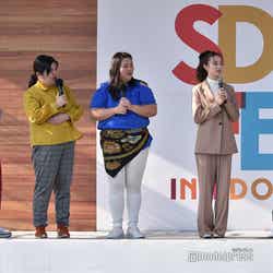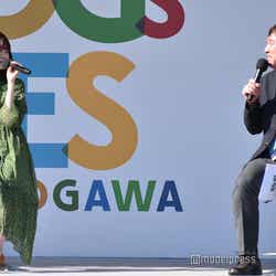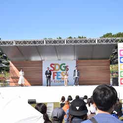 SDGsトークセッションステージには、今年7月に乃木坂46を卒業したタレントの山崎怜奈が登場。グリーンワンピースを爽やかに着こなし、江戸川区で過ごした幼少期を回顧。「生まれてから19年間江戸川区で育ってきて、こうして戻ってきて区民のみなさんの前でお話できることが光栄です」と謙虚に語った。ミキ、ブラックスーツで漫才披露