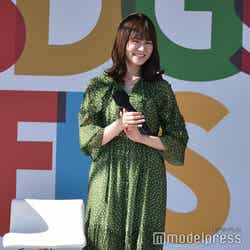 SDGsトークセッションステージに登場した江戸川区出身の山崎は、グリーンが眩しいワンピース姿を披露。この日は、江戸川区長の斉藤猛氏と、区が目指す共生社会の姿をより多くの人に知ってもらうことを目的に立ち上げた「ともに、生きる。江戸川区プロジェクト!」についてトークした。江戸川区で過ごした幼少期についての話題で、山崎は「江戸川区に住んでらっしゃったらお分かりだと思うんですが、一之江という町に住んでました。私は自由に育ってたので治安が良いこともあり、お小遣いを持って自由に遊びに行ってました」とにっこり。
